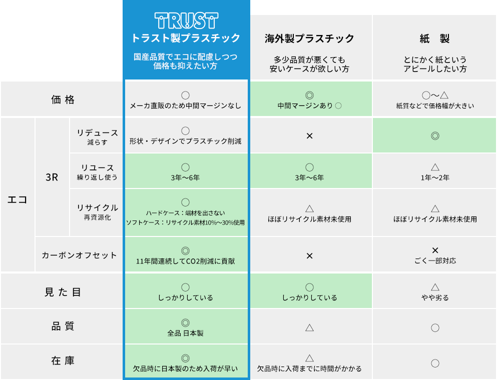 トラストのカレンダーケースは国産品質で、さらにエコに配慮して価格も抑えたい方におすすめです。