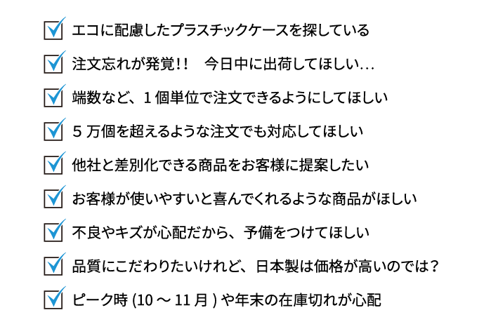 ご注文したケースを翌日には発送していただけるため、その後の作業の工程管理が組みやすく助かっています。
